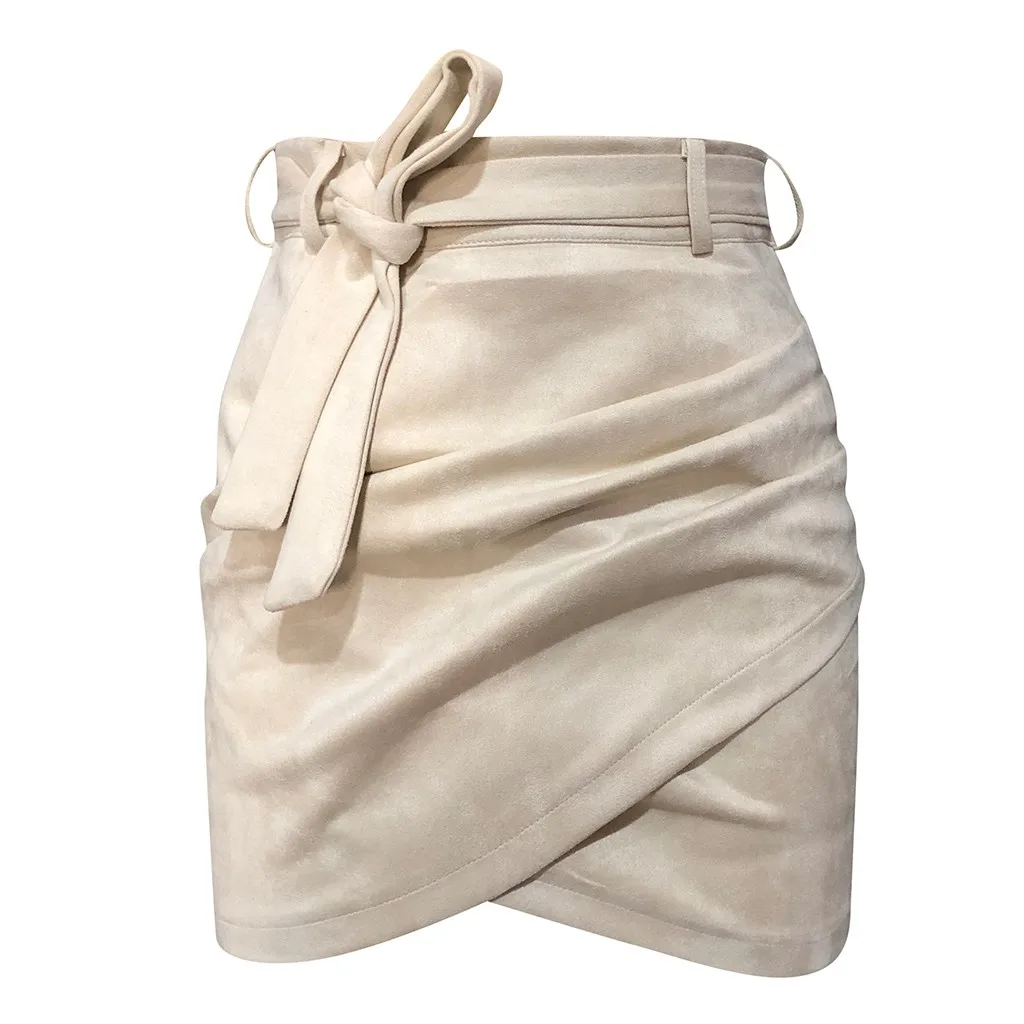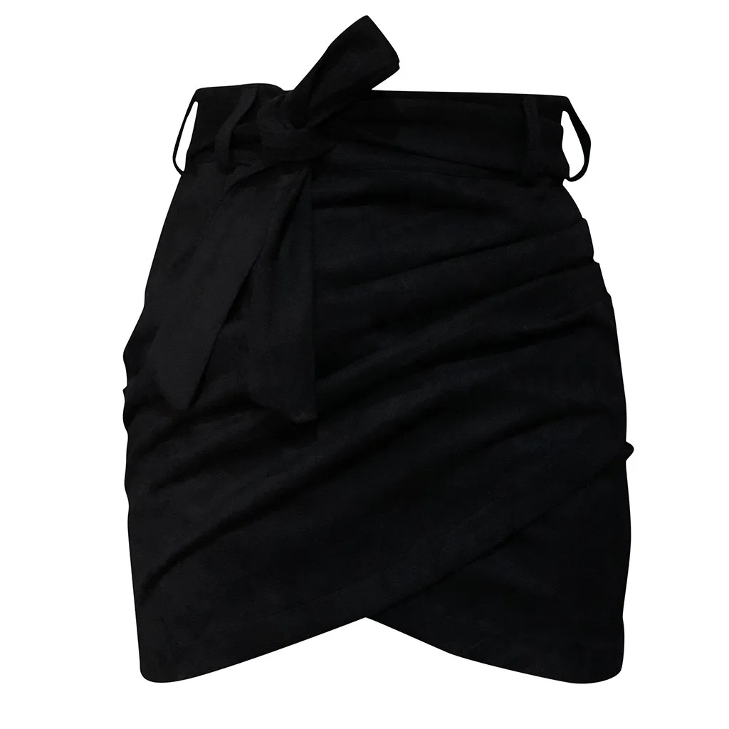 Wrap Hip Skirts for Women Female Fashion Mid Waist Solid Mini Pencil Ruched Skirt Slim Fit Sexy Bow Knot Short Skirts with Belt