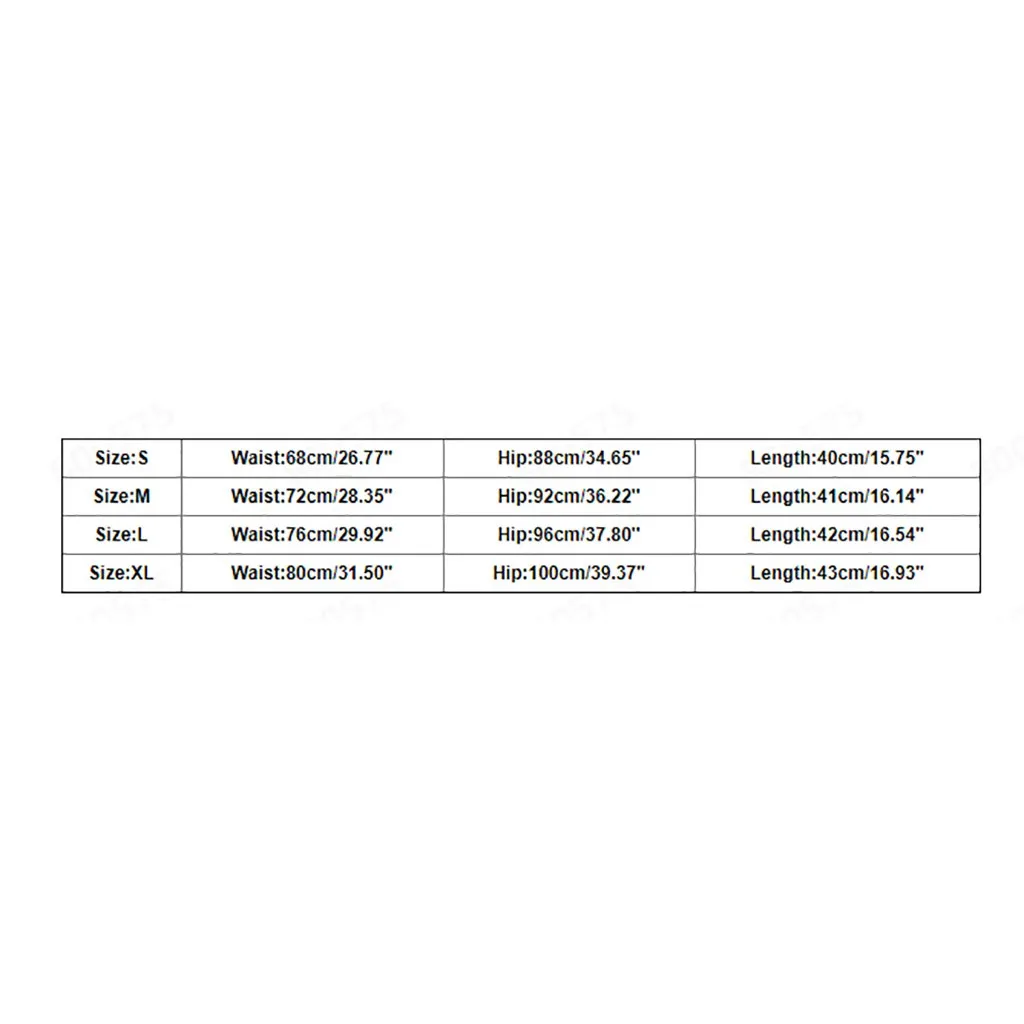 | Size:XL | Waist:80cm/31.50'' | Hip:100cm/39.37'' | Length:43cm/16.93'' |